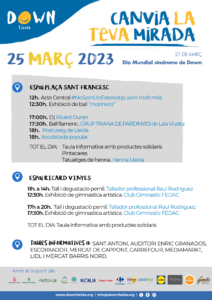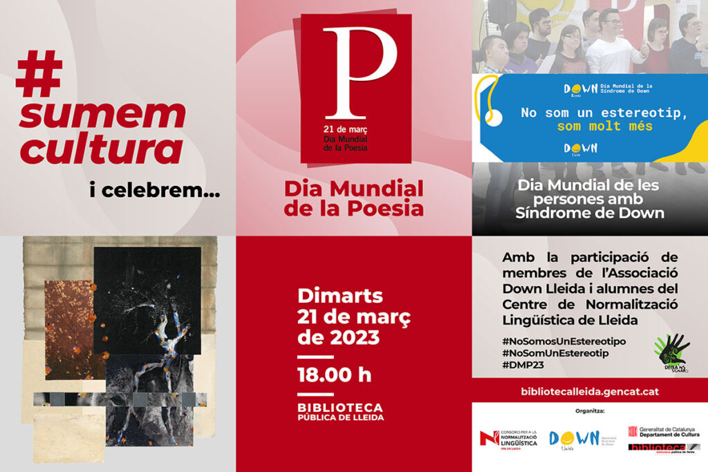- 18:00h Celebració del Dia Mundial de la Poesía i Dia Mundial de la síndrome de Down a la Biblioteca Pública de Lleida