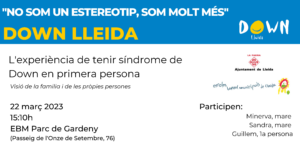 15:10 L’experiència de tenir síndrome de Down en primera persona. Visió de la família i de les pròpies persones. A l’Escola Bressol Municipal Parc de Gardeny